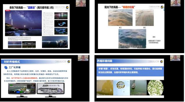 冰球突破mg正规官网耕读教育与实践教育第二讲于2月26日在在云端开讲。本次报告邀请到广东海洋大学教授、博士生导师、南方藻类资源开发与利用研究中心负责人黄翔鹄。黄教授以“‘蓝眼泪’与海洋生态灾害---对虾健康养殖”为主题开展讲座,学院21级新生以及生物专业研究生300余人参与了本次线上学习。会议由冰球突破mg正规官网党委副书记张宇峰主持。