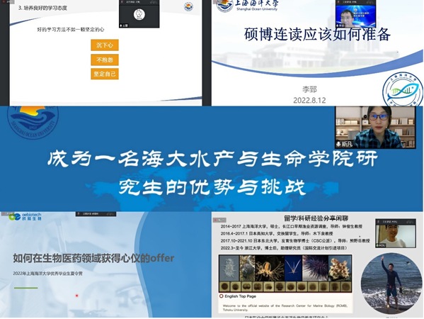 12日上午,生物系的多个科研团队负责人介绍了各自课题组的研究方向、学术成果、实验室氛围、毕业生去向,为营员们将来更加精准报考心仪的导师奠定了基础。下午的师生交流环节,翟思凡老师带来了《来上海海大生命学院做一名研究生的优势与挑战》的生动报告,焦荷、李郅、王雯、姚晓华、侯世挺五位优秀研究生代表,也从新生生活适应、如何准备硕博连读、读博感悟、就业、出国留学等方面,全方位地分享了他们的成功经验。