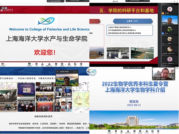 11日上午,开营仪式由生物系副主任孙诤教授主持。冰球突破mg正规官网陈再忠副院长介绍了学院的研究生招生政策、培养方案与最新动向;张宇峰副书记介绍了学院的学生工作制度,在人文关怀和助力就业方面的具体举措;鲍宝龙系主任介绍了生物学科的发展沿革、师资力量、团队建设、研究特色与成果。之后,营员们跟随着直播镜头,云游了美丽的海大校园。下午,胡鹏教授、祖尧副教授、张东升副研究员为同学们带来了三场精彩的学术报告,展示了学院在生物学前沿研究与公民科学方面的优势与特色。