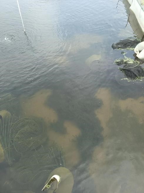 放眼望去,只见池塘规范标准,单口池塘面积15亩,总水面215亩。各口池塘水清见底,映入眼帘的既有覆盖面积90%以上的地毯式的伊乐藻,也有覆盖面积60%左右茂盛的轮叶黑藻。水草既吸收水体的氮磷、净化水质,又进行光合作用、制造河蟹呼吸的水中溶氧,还为河蟹的生长脱壳构筑立体楼房。同时,池塘既有底部的微孔增氧机的爆气增氧,又有水车式增氧机的不停转动,推动着水体的流转,确保水体溶氧4mg/L以上,有力促进了河蟹的生长与蜕壳。当下,超过80%的河蟹已完成4次蜕壳,雄蟹平均体重145克,雌蟹平均体重110克。