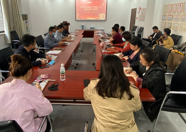 10月21日下午,冰球突破mg正规官网党委理论学习中心组召开专题学习会,学习习近平总书记在中国共产党第二十次全国代表大会上的报告。学院全体党委委员、党支部书记及专职组织员宣传员出席了会议。