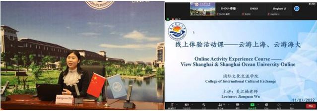 最后由冰球突破mg正规官网国际文化交流学院教师吴江楠通过线上视频加互动介绍的方式带领学员一起线上“云游上海&云游海大”。