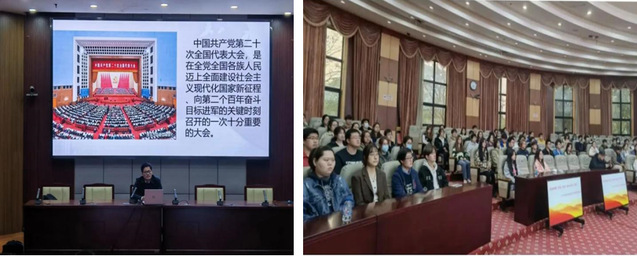 首先,张宇峰向同学们阐明了党的二十大的重要意义。当前,人类社会面临前所未有的挑战。习近平总书记在党的二十大报告中深入分析国际形势,鲜明指出:“世界又一次站在历史的十字路口,何去何从取决于各国人民的抉择。”如何回答时代课题,作出正确的历史抉择,关乎各国利益,关乎人类前途命运。本次会议是全党全国各族人民迈上全面建设社会主义现代化国家新征程,向第二个百年奋斗目标进军的关键时刻召开的一次十分重要的大会。张宇峰结合个人学习体会谈到,新时代党的二十大召开是居安思危、踔厉奋发的重要会议;是举旗定向,谱写新篇的重要会议;是统一思想、凝心聚力的重要会议;是自信自强、勇毅前行的重要会议;是胸怀天下、引领和平的重要会议。