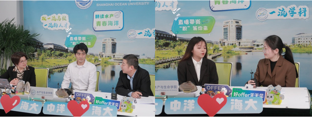 在中洋集团、正大集团招聘负责人分别介绍企业概况和用人需求后,高晓波、黄旭雄纷纷上阵直播带“人”、逐一介绍17名本、研毕业学生优势,“我们小龚同学不仅水产专业扎实,还在部队锻炼过一年,综合素质高”;“我们这位研究生因为长期扎根一线水产基地,所以只通过线上面试的方式交流。刚刚他展示了自己在基地的科研生活,看得出我们的学生真正的做到了下得了塘、搞得了科研,且学术成果丰硕”。推介后,企业负责人与毕业生进行现场互动。