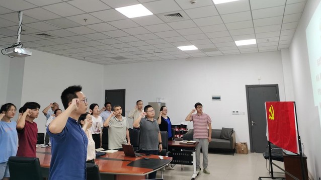 重温入党誓词,牢记初心使命。在党支部组织委员徐晓雁同志领誓下,全体党员一起高举右手,面对鲜红的党旗,庄严宣誓。铮铮誓言,体现了全体党员对中国共产党的无限忠诚,通过重温誓词,更加坚定了作为一名共产党员的初心使命。