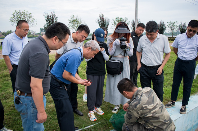 26日下午,服务团队来到安徽腾飞生态农业公司扣蟹养殖池塘进行调研,发现部分池塘划蝽数量很多,服务团成员和腾飞生态农业公司叶总讨论后给出了三种解决方案;随后,服务团来到宣城市金水源食品有限公司参观,该公司主要从事蟹黄和蟹油的加工,原料主要为一龄早熟蟹,腾飞生态农业公司韩总介绍该公司目前碰到的主要问题为加工副产物蟹壳处理费用较高,没有合适的方法进行资源化利用,服务团吴旭干和杨志刚教授仔细询问了加工后蟹壳的物理参数和每日数量等,给出了两种作为饲料原料在虾蟹饲料上的应用方案。最后,服务团来到位于水阳镇的金新河蟹苗种专业合作社进行调研和指导,该基地同时也是安徽农业大学特种水产试验站,该基地常年有安徽农大研究生驻点开展相关研究工作,合作社葛总首先介绍了合作社的基本情况,安徽农大李西雷副教授介绍了该基地今年开展的相关实验情况。服务团到合作社塘口察看和交流,详细了解了当前扣蟹养殖管理情况、投喂饵料和水花生管理,并就水花生控制方法展开了讨论;冯建彬副教授就安徽农大和金星合作社合作开展的河蟹良种选育给出了自己的看法。此外,服务团还实地考察了金新合作社500亩的大水面生态渔业,他们通过投螺和种草恢复大水面生态环境,投放少量河蟹苗种和花白鲢,每年7月份开始出售水草和螺蛳获得了较好的经济效益,这种大水面生态渔业模式已经在皖南地区进行大面积推广。