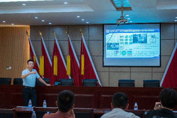 7月28日上午,服务团前往盐城建湖县九龙口大闸蟹有限公司进行调研和技术培训,该公司总经理邵建华带领服务团参观了该公司的养殖池塘及包装车间,双方就蓝藻防控、成蟹池塘的水草选择和配合饲料替代冰鱼等进行了深度交流。下午,服务团在建湖县九龙口大闸蟹服务中心会议室进行了座谈和培训,座谈会上,盐城市农业农村局杨群义副局长、盐城市水产科学研究院王会副院长和九龙口公司邵建华总经理分别就《盐城市河蟹产业概况及成果》、《盐城市水产科学研究院概况及正在开展的课题进展》、《九龙口公司河蟹养殖情况及面临挑战》进行了介绍,并与服务团进行了讨论;此后,吴旭干教授就《河蟹公母分养模式及优质苗种培育技术》,张俊副教授就《河蟹养殖机械及智能控制》,对参会人员进行了培训,盐城市和建湖县水产技术人员及河蟹养殖户就公母分养技术、水质调控、割草和投喂机械、增氧方式等和服务团进行了讨论,双方均收益匪浅。不仅加快了冰球突破mg正规官网河蟹研究成果的推广,而且为后续合作奠定了基础。盐城市农业农村局渔业科沈永龙科长、盐城市水产科学研究院朱爱明教授、建湖县水产技术推广站和恒济镇政府相关人员参加了此次活动,并同服务团进行了交流。