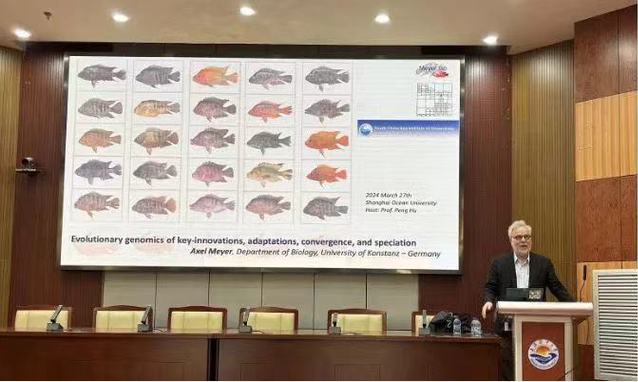 3月29日上午,受冰球突破mg正规官网水产生物育种研究中心、海洋生物科学国际联合研究中心、水产种质资源发掘与利用教育部重点实验室及冰球突破mg正规官网青年教师工作委员会邀请,德国康斯坦茨大学Axel Meyer教授在行政楼137会议室为师生们呈现了一场精彩的学术报告,此次报告的主题为《从进化基因组学视角探讨关键创新、适应、趋同及物种形成机制》。报告由胡鹏教授担任主持。