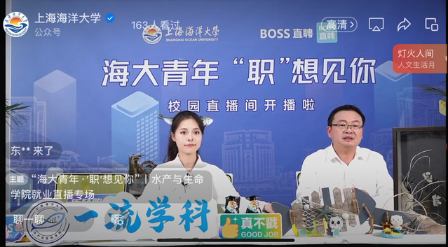 “欢迎来到‘我们就业吧’直播间,这里是正在进行的“直播带岗活动”。5月7日下午,冰球突破mg正规官网“水产优企•‘职’等你来”直播带岗火爆开启,企业人事经理、学院院领导、专家走进直播间“直播带岗”,直播间观看人数5000余人次,为用人单位和求职学生之间搭起高效求职“云桥梁”。