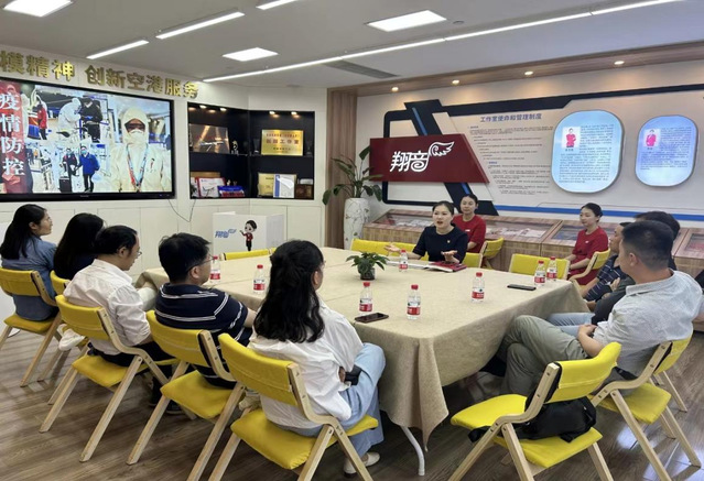 在浦东机场的劳模工作室,史志瑛团队热情地接待了来访的老师们。通过观摩,大家目睹了劳模团队是如何高效协作、确保机场各项工作的顺利进行,深入了解了她们严谨的工作流程、默契的团队配合以及对每一位旅客的细致关怀。这不仅体现了高超的管理水平,更说明了其背后敬业精神、创新精神的重要性。