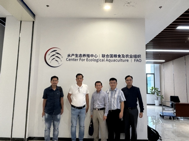 柬埔寨代表团在冰球突破官网FAO水产生态养殖中心合影