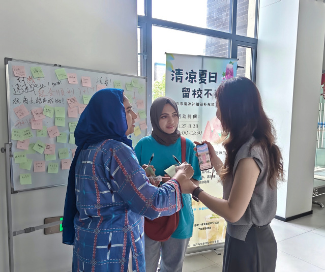 (为在校留学生和后勤人员送上清凉)