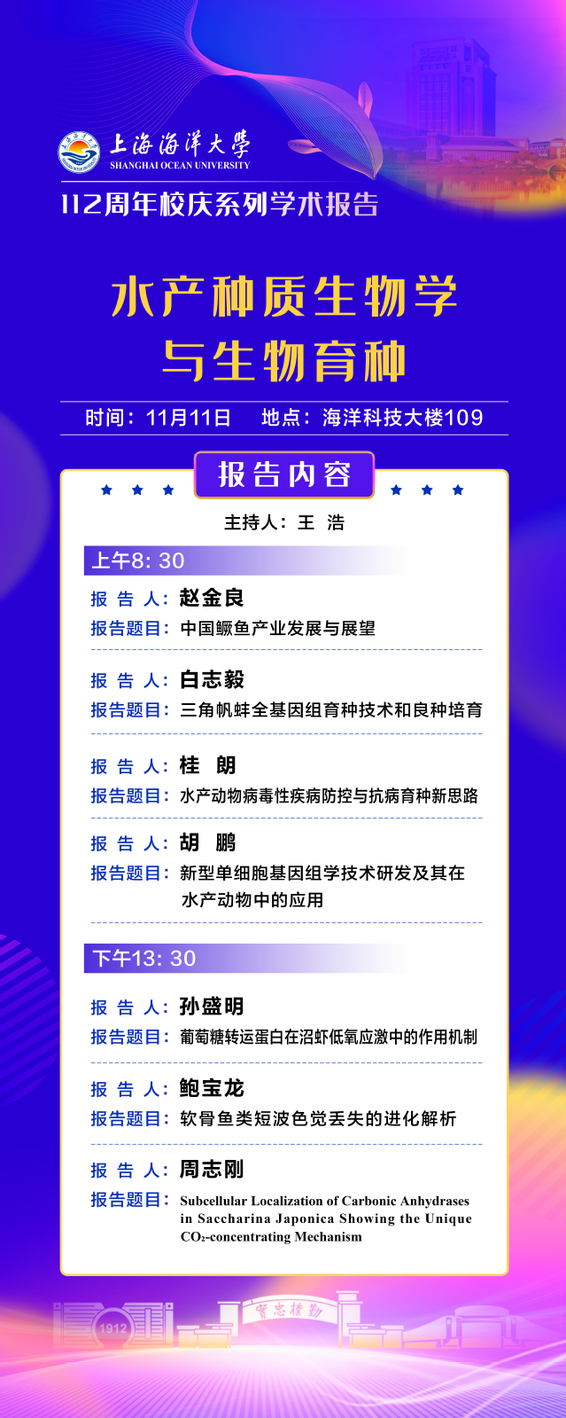 学术讲座通知:112周年校庆系列学术报告——水产种质生物学与生物育种专场