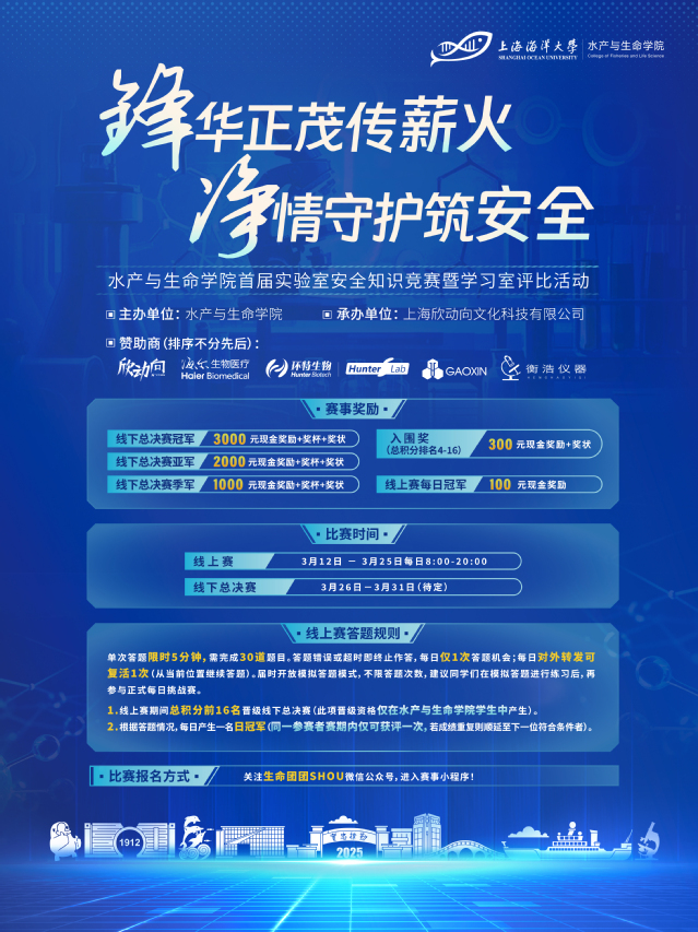 冰球突破mg正规官网以“锋”华正茂传薪火,“净”情守护筑安全为主题,开展首届实验室安全知识竞赛暨最美学习室评比活动。通过竞赛,全面提升师生的安全知识,同时推进学习室标准化评比,倡导整洁、安全、有序的科研学习环境,增强师生维护公共空间的意识。