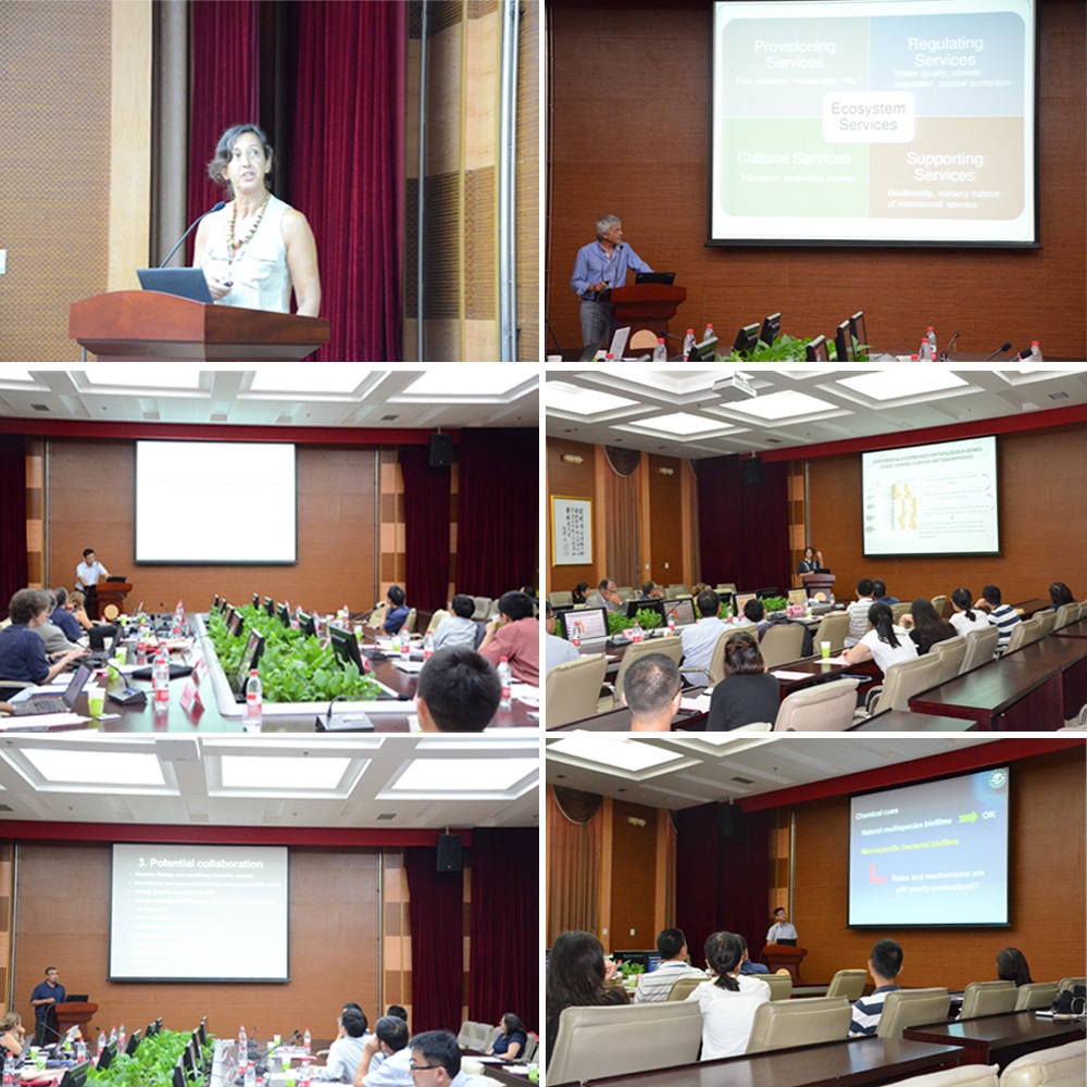 在中葡海洋生物研讨会上,葡萄牙阿尔加夫大学Deborah Power教授、Jorge Gonçalves教授、Maria Clara Costa教授、Rui Santos教授、Alexandra Teodósio教授及冰球突破官网杨金龙教授、鲍宝龙教授、何培民教授、冷向军教授、李云凯副教授就海洋生物方面基础研究、海洋水产种质资源保护、海洋生态环境保护及水产养殖营养学研究方面等作了学术报告,与会人员围绕报告进行了热烈的学术讨论。