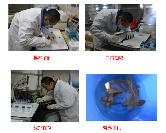 在本次南极科考过程中,翟万营主要负责南极鱼类样本和水体环境样本采集,共在南极罗斯海新建站、中山站、麦克默多站采集包括独角雪冰鱼(Chionodracohamatus)尖头裸龙鰧(Gymnodracoacuticeps)、伯式肩孔南极鱼(Trematomusbernacchii)及多种Trematomus属南极鱼类样本60条,同时采集水体样本30个。根据项目研究需要,翟万营对样本进行外形测量,血液抽取和进行解剖、组织保存,进行大片段DNA提取,同时在现有条下对采集样本进行短暂驯化养殖和前处理工作。本次样本采集为深入开展鱼类在极端环境下的适应与进化研究提供良好的实验材料和前期准备工作,为后续研究奠定基础。