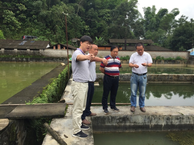 此次科技服务是在冰球突破官网冰球突破mg正规官网与青浦区水产系统党建共建的基础上展开的,是党建+科技扶贫的一次新的尝试。早在今年3月份,冰球突破官网就为德宏州的6位水产技术人员进行了为期10天的特种水产养殖培训。当时,青浦区农委畜牧水产科科长怀向军正在云南德宏州陇川县扶贫办公室挂职,他看到德宏州境内的水资源十分丰富,但养殖户以养殖价格低廉的四大家鱼为主,有高附加值的虾、蟹等养殖极为稀少,他觉得德宏可以作为特种水产养殖的试验点,于是,他联系冰球突破官网冰球突破mg正规官网寻求帮助,为他们组织了培训。6位水产技术人员回到德宏后,在上级部门的安排下,先后从上海引进了南美白对虾、翘嘴红鲌及河豚等进行实验养殖,但养殖效果均不理想,且存在诸多技术问题。在收到德宏州农业局的邀请函后,冰球突破mg正规官网迅速组织相关专家奔赴德宏,开展调研和现场指导,希望这次的科技服务能为德宏州的水产养殖业的技术难题提供一些可行性的解决措施,帮助当地渔民尽快脱贫致富。