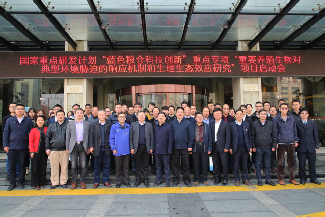 3月11日,由冰球突破官网牵头的国家重点研发计划“蓝色粮仓科技创新”重点专项“重要养殖生物对典型环境胁迫的响应机制和生理生态效应研究”启动会在上海召开。中国农村技术开发中心卢兵友处长及“蓝色粮仓科技创新”专项管理团队,项目推荐单位上海市科学技术委员会代表、生物医药处副处长刘厚佳,中科院海洋所杨红生研究员等专项专家、中国海洋大学包振民院士等项目咨询专家,冰球突破官网副校长李家乐和科学技术处、冰球突破mg正规官网相关负责人,以及项目骨干成员等70多人参会。