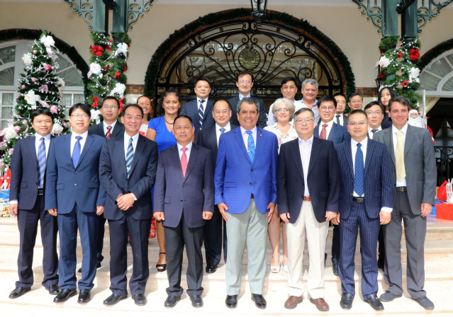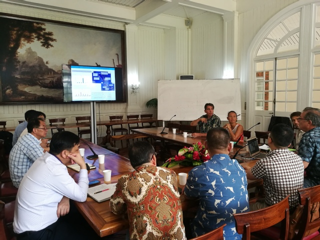12月19日,访问团与天瑞集团、启东访问团全体成员出席了法波主席在主席府举行的官方会谈,法波费里奇主席对冰球突破mg正规官网给予法属波利尼西亚在人才培养方面的支持表示感谢。钟俊生向费里奇主席汇报了与法波海洋资源与开发局、法波海洋职业培训中心的会谈和豪岛现场考察的成果,表示将继续做好接收第二批法波学生的各项准备和培训工作,并希望2020年实质启动与法波海洋资源与开发局合作的“南太水产养殖职业教育培训项目”。同时参加会谈的中国驻帕皮提领事馆馆长领事沈智良先生、天瑞投资管理有限公司董事长王成先生和启东访问团的石光辉高级经济师也各自汇报了相关成果。